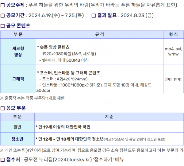 □ 공모주제 : 푸른 하늘을 위한 우리의 바람(우리가 바라는 푸른 하늘을 자유롭게 표현)