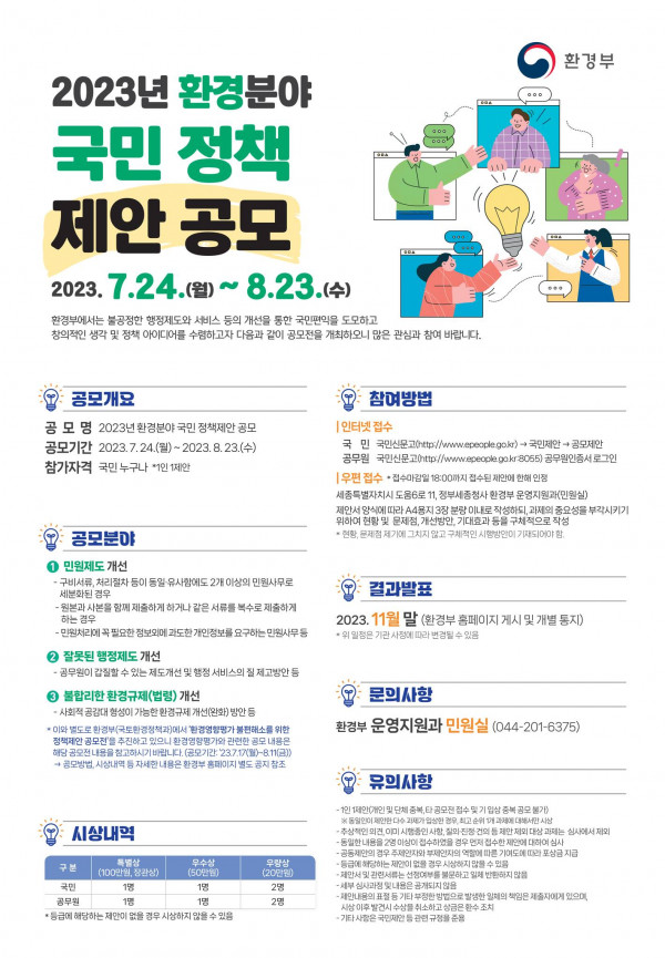 창의적인 생각 및 정책 아이디어를 수령하고자 다음과 같이 공모전을 개최하오니 많은 관심과 참여 바랍니다.