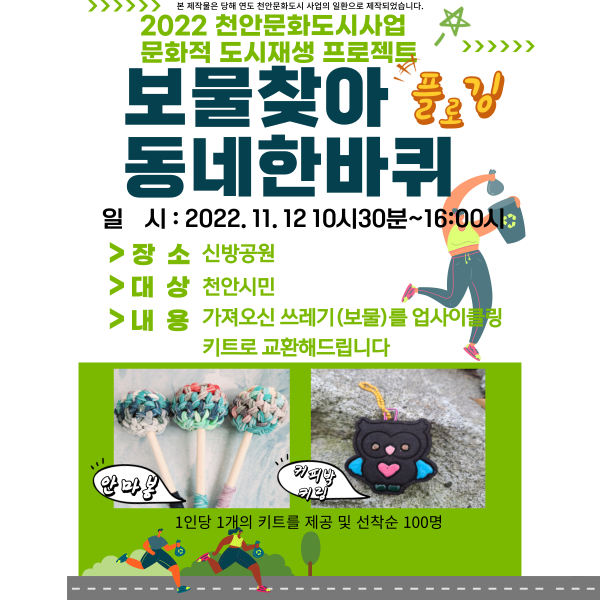 2022 천안문화도시사업 문화적 도시재생 프로젝트 '보물찾아 동네한바퀴'- 플로깅