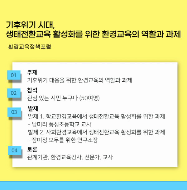 환경교육정책포럼 '기후위기 시대, 생태전환교육 활성화를 위한 환경교육의 역할과 과제' 참가자 모집