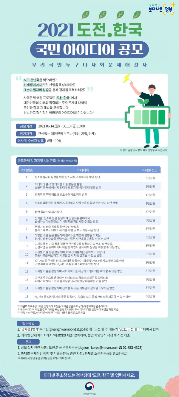 2021 도전 한국 국민 아이디어 공모전이 개최되었습니다!