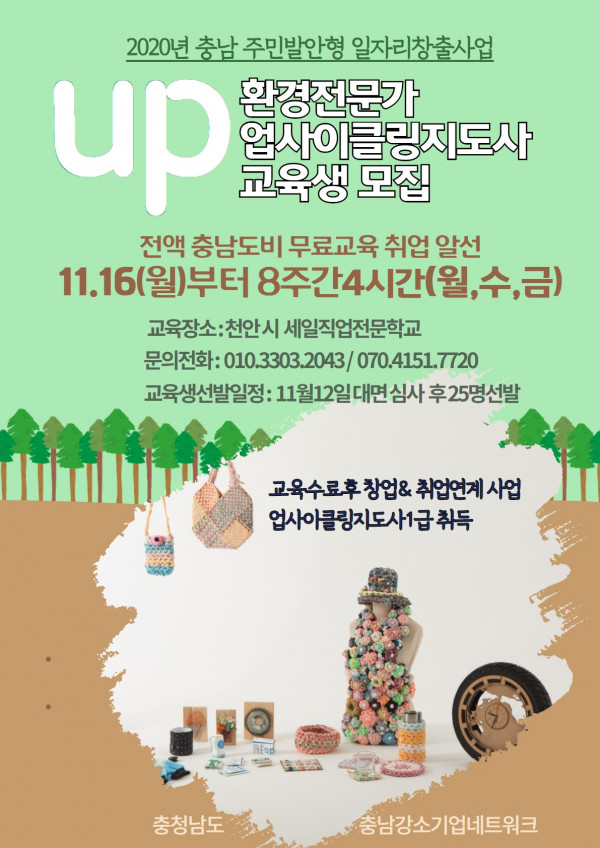 충남 일자리창출사업 업사이클링지도사 교육생 모집