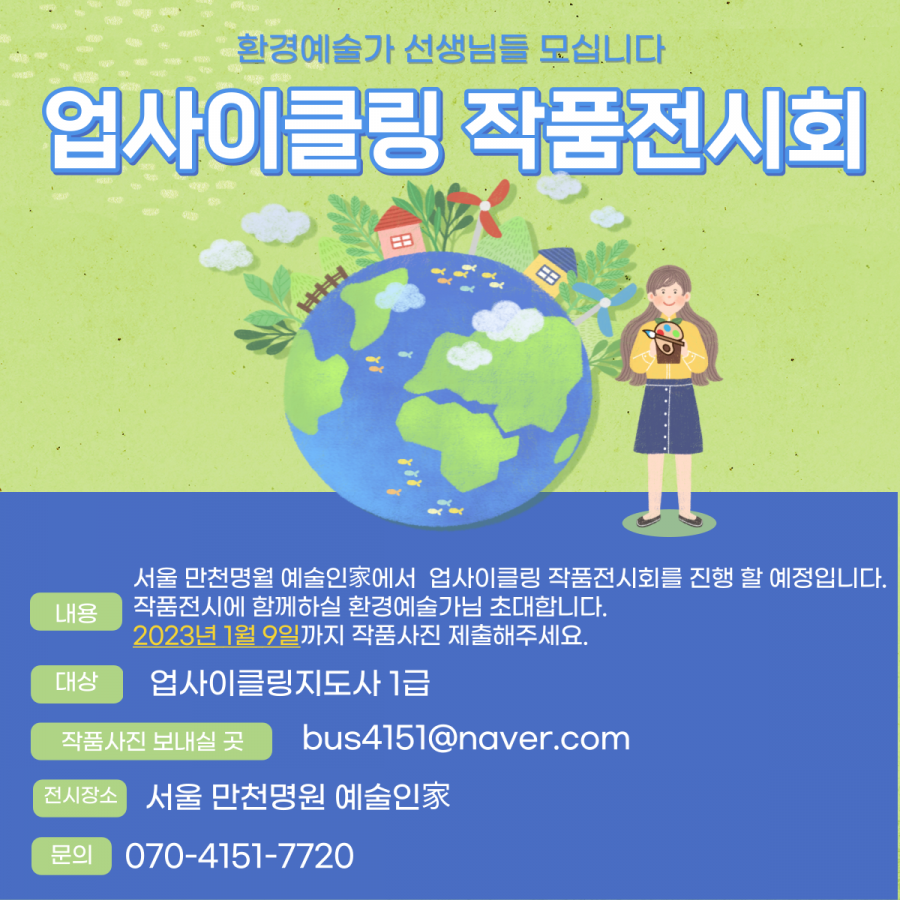 업사이클링 전시회를 합니다. 작품 참여하실 업사이클링지도사1급 선생님들 모십니다.