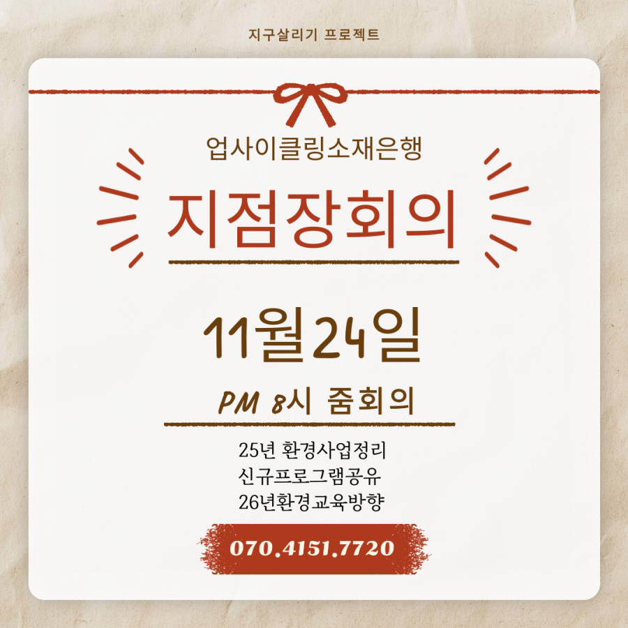 전국 지점장 회의 진행합니다 페이지 정보 작성자 최고관리자 댓글 0건 조회 984회 작성일 25-11-19 11:55 본문 올해 진행한 환경교육 활동들을 한눈에 정리하고,다가올 2026년 환경교육 방향도 함께 이야기했요~지역마다 펼쳐진 재미있는 교육 사례들을 이야기 하고 서로의 아이디어에 영감을 받는 즐거운 시간!2026년에도 더 많은 사람들과 환경을 연결하고,배우고, 실천하는 교육으로~#환경교육 #지점장 #환경활동가 #탄소중립 #업사이클링#파주#횡성#전주#인천#영통#동탄#화순#광양#남양주#진주#공주#일산#군산#생태교육 #지속가능한지구 #환경수업 #교육네트워크 #환경사랑 목록 이전글세계 습지의 날 기념 전국 지점장 캠페인 진행~ 26.02.02 다음글인천동구노인인력개발센터 업사이클링지도사 양성과정 시작~ 25.09.17